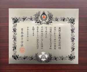 「銀色有功章」は15年以上献血を行っている団体が対象であり、当社の長年の社会貢献の功績が認められました。