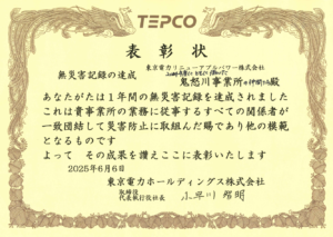 2024年度1年間の無災害記録を達成したことによる表彰を受けられました。