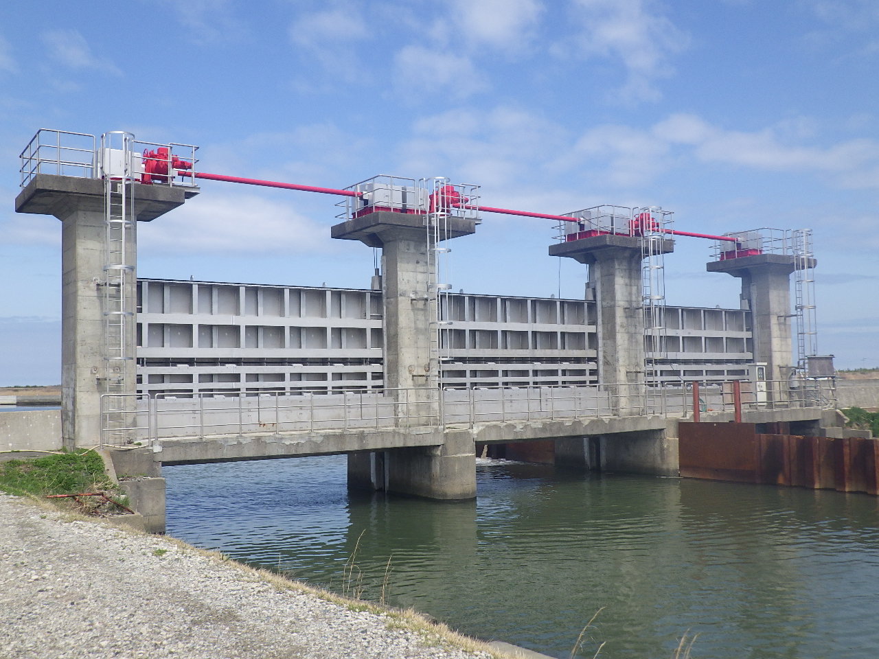 日下石水門 公開済み: 2025年10月16日更新: 2025年10月17日作成者: hi.kannoカテゴリー: 水門・巻上機タグ: 福島県相馬市 名称 : 日下石水門 型式 : ステンレス製ローラーゲート 幅×高×門数 : 8.000m×4.470m×3門 発注元 : 福島県相双農林事務所